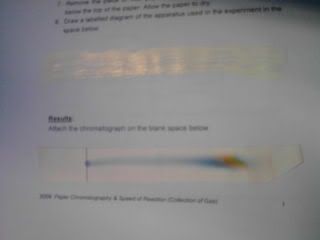 The (above) picture is Jia Min's worksheet haha she so blur, we have to paste the chromatogram on the worksheet, then she blurblur paste on wrong place go paste on top, then she take out and repaste, then that space was like sticky sticky filled with glue, so SHE DREW LIQUID PAPER ON THE WHOLE PIECE hahaha so funny lah! 8)